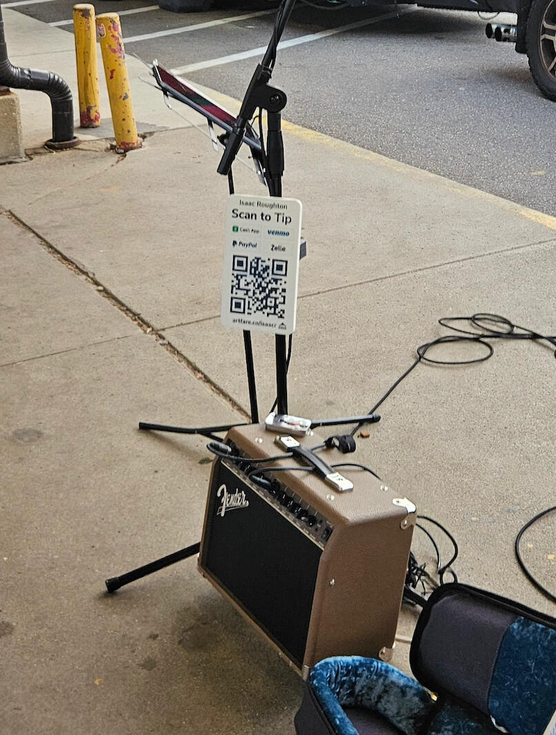 "Our Artfare sign paid for itself in half a gig! Digital tips are now way bigger than cash tips. Every performer should be using one of these signs. Easy, professional, and it just works." - Barb“Tipping is back! Nobody has cash anymore, but now everyone can tip with Artfare.” - Kylie