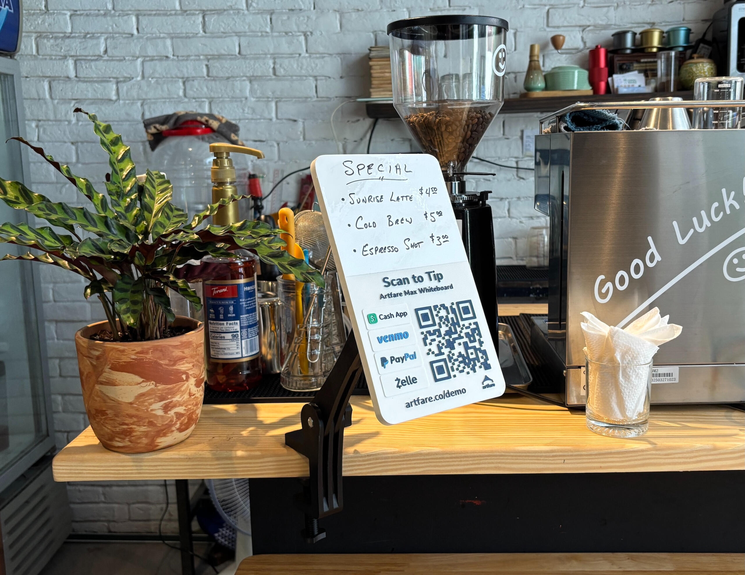 Activate features to customize your sign and optimize revenue. For example, Artfare's exclusive Venmo Code Assist helps first-time customers send you money on Venmo without confusion.